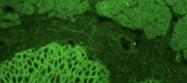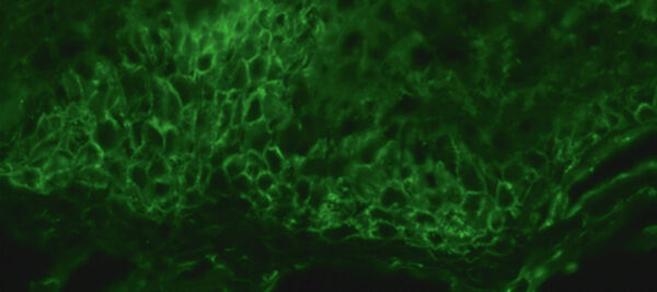 Der Nachweis von IgG- oder IgA-Ablagerungen an den Zell-Zell-Kontakten (interzelluläres Muster) mittels direkter Immunfluoreszenz bzw. von Autoantikörpern, die mit einem intrazellulären Muster im Haut-Ak (IgA / IgG) am Epithel binden, stellt eine Voraussetzung für die Diagnose einer Pemphigus- Erkrankung dar.