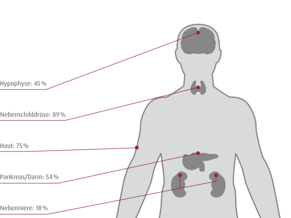 | Cushing-Syndrom mit ektoper ACTH-Sekretion (assoziiert mit schlechter Prognose) | 6 % |