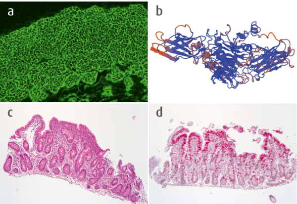 Die Zöliakie ist eine häufige entzündliche Erkrankung, die bei genetischer Prädisposition durch glutenhaltige Nahrungsmittel ausgelöst wird. Bei klinischem Verdacht auf eine Zöliakie sollten primär Transglutaminase-Ak (IgA) oder Endomysium-Ak (IgA) bestimmt und ein IgA-Mangel ausgeschlossen werden. Diese Empfehlung gilt für alle Altersgruppen. Bei vermindertem Gesamt-IgA sollten Gliadin-Ak (deamidiert, IgG) oder Transglutaminase-Ak (IgG) untersucht werden.