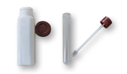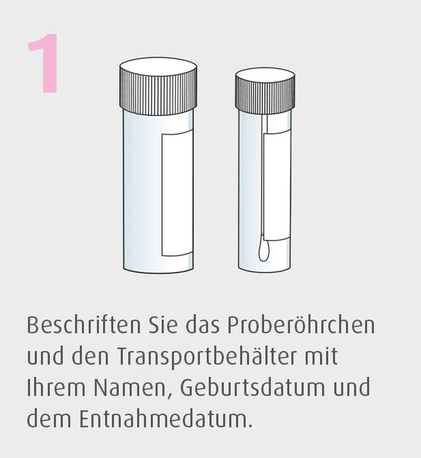 Zur Stuhlprobenentnahme steht dem Patienten ein Set aus Proberöhrchen und Transportbehälter zur Verfügung.